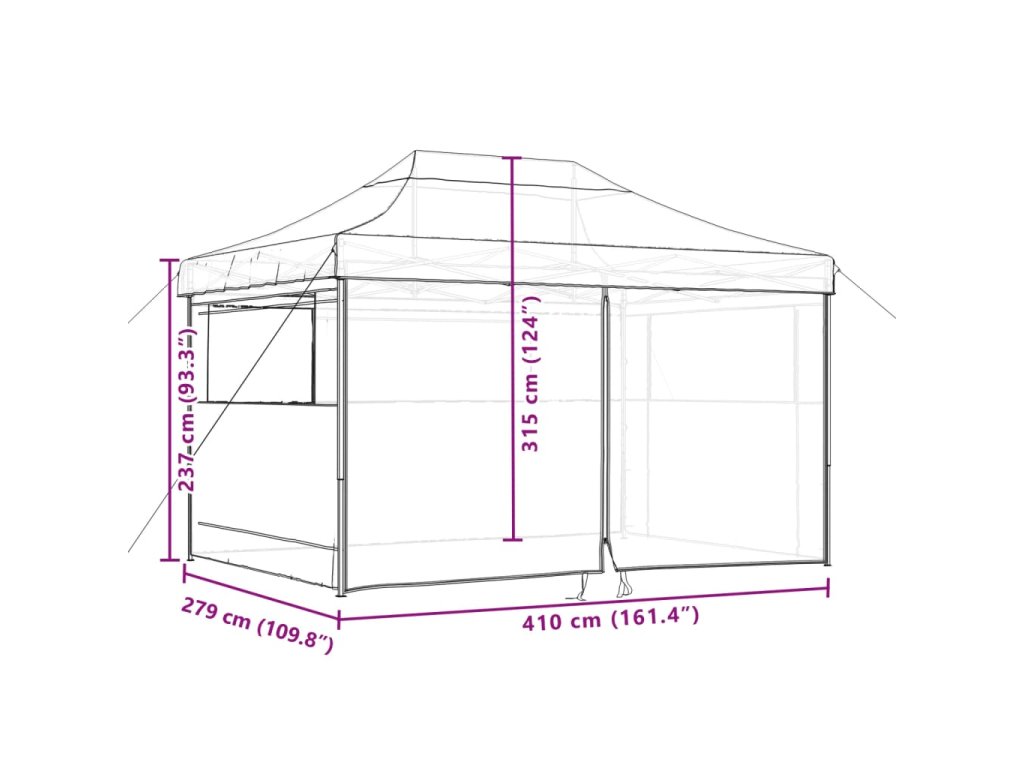 Tento skladací párty stan s bočnými stenami je ideálny na širokú škálu vonkajších podujatí, ako sú predstavenia, svadby, večierky, grilovačky, festivaly a podobne.