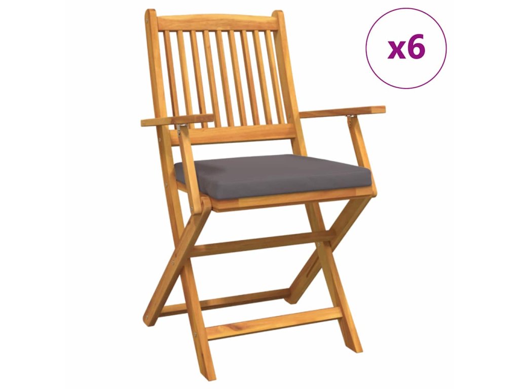 Multidom Skladacia stolička 6 pcs Sivá 49 x 57.5 x 92 cm Akáciový masív