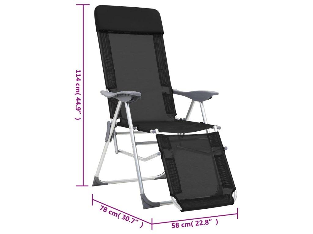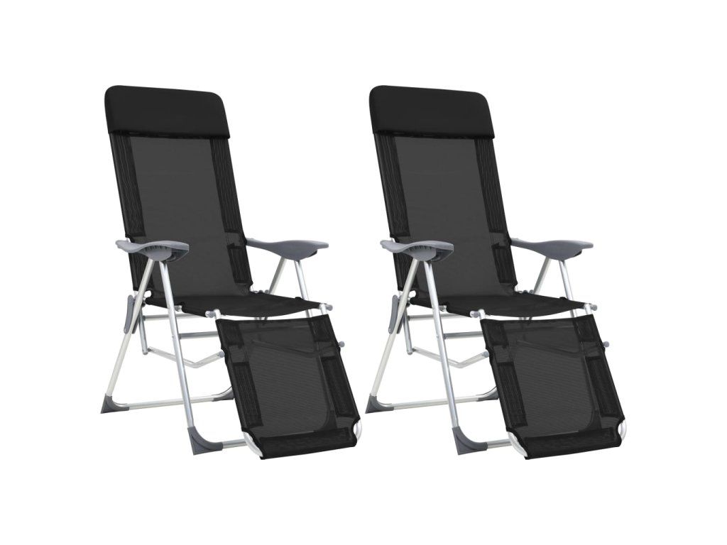 Multidom Skladacie kempingové stoličky a opierky nôh 2ks čierne textilén