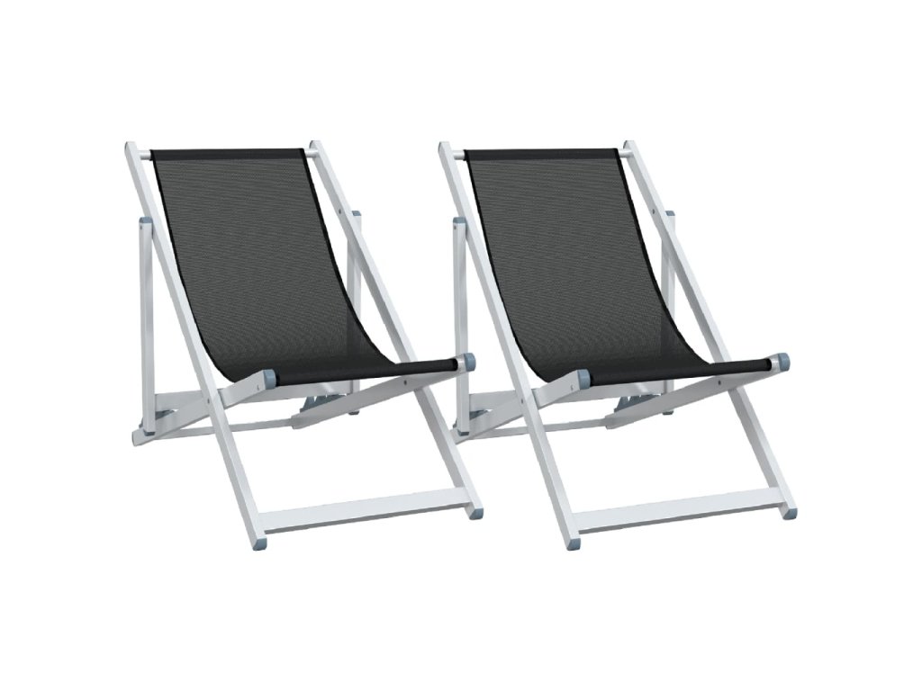 Multidom Skladacie plážové kreslá 2 ks, čierne, hliník a textilén