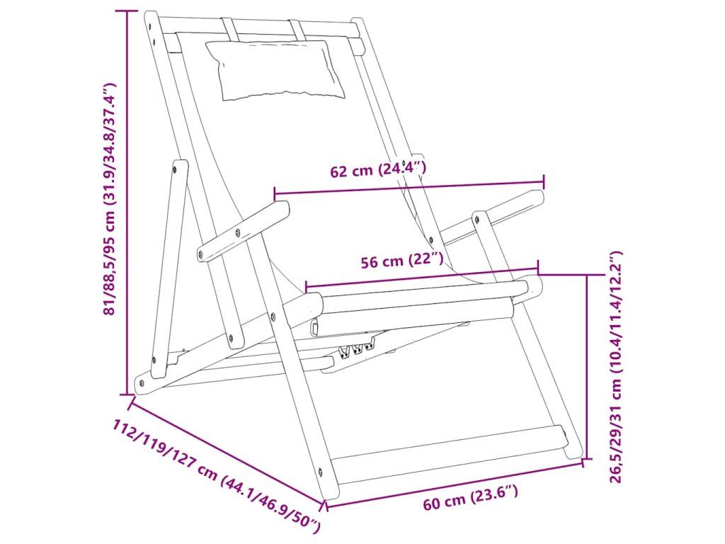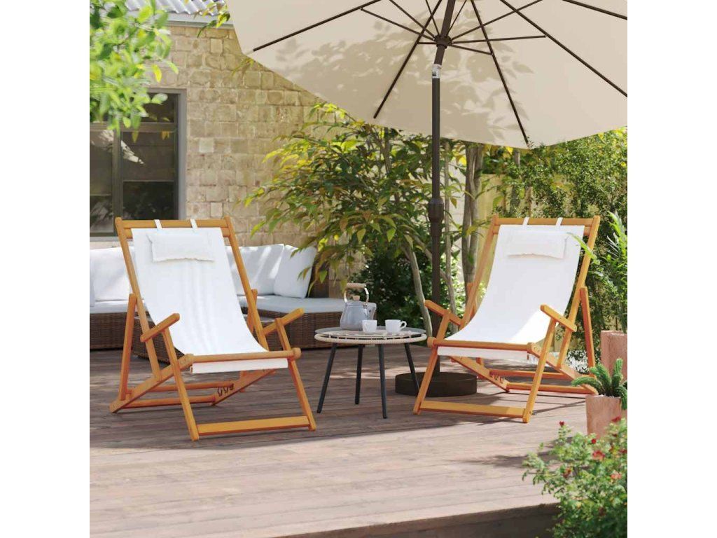 Relaxujte v týchto polohovateľných kreslách na pláži, v kempe alebo na záhrade! Skladacie plážové lehátka sú vyrobené z masívneho eukalyptového dreva a polyesterovej tkaniny, a sú odolné voči poveternostným vplyvom.