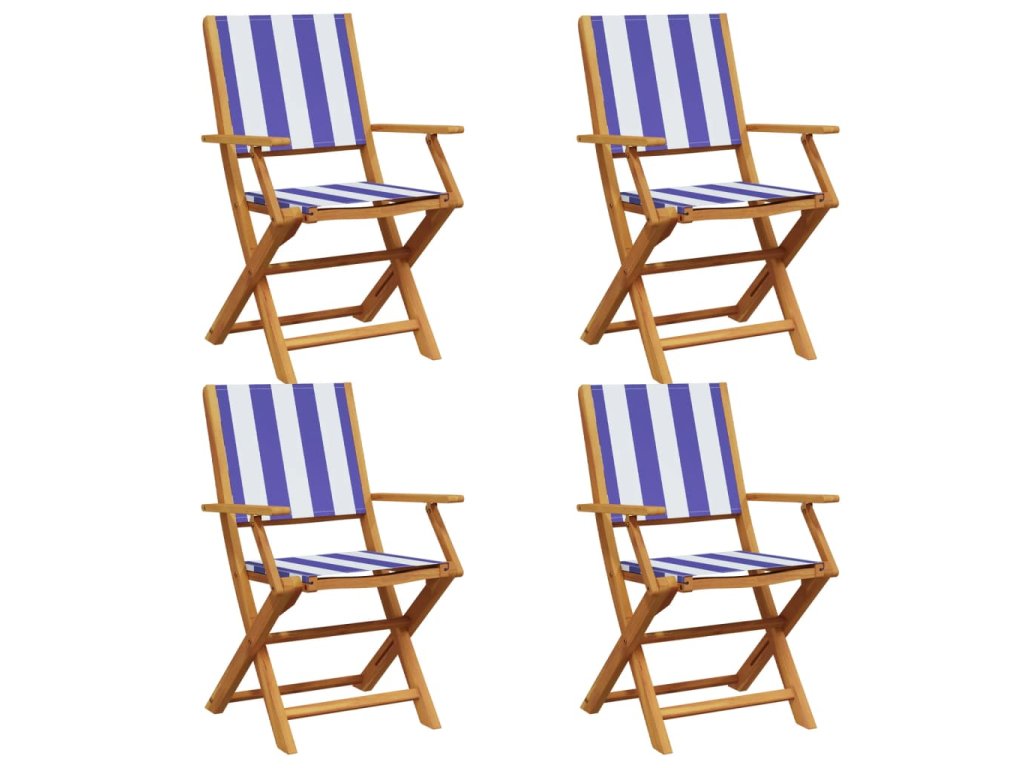 Multidom Skladacie záhr. stoličky 4ks modrá a biela látka+masívne drevo