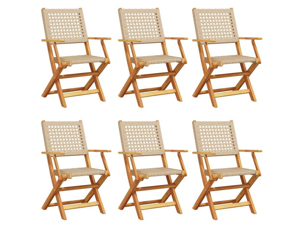 Multidom Skladacie záhr. stoličky 6 ks béžové polyratan a masívne drevo