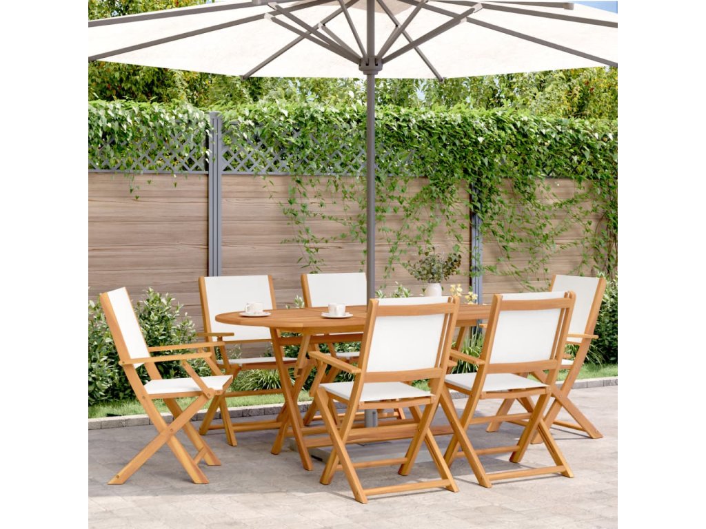 Multidom Skladacie záhr. stoličky 6ks krémovobiele látka a masívne drevo