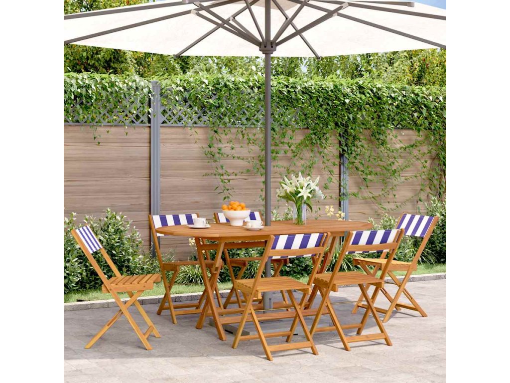 Multidom Skladacie záhr. stoličky 6ks modrá a biela látka+masívne drevo
