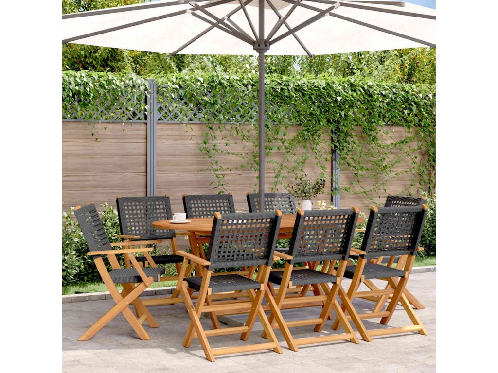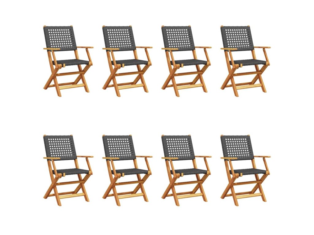 Multidom Skladacie záhr. stoličky 8 ks čierne polyratan a masívne drevo