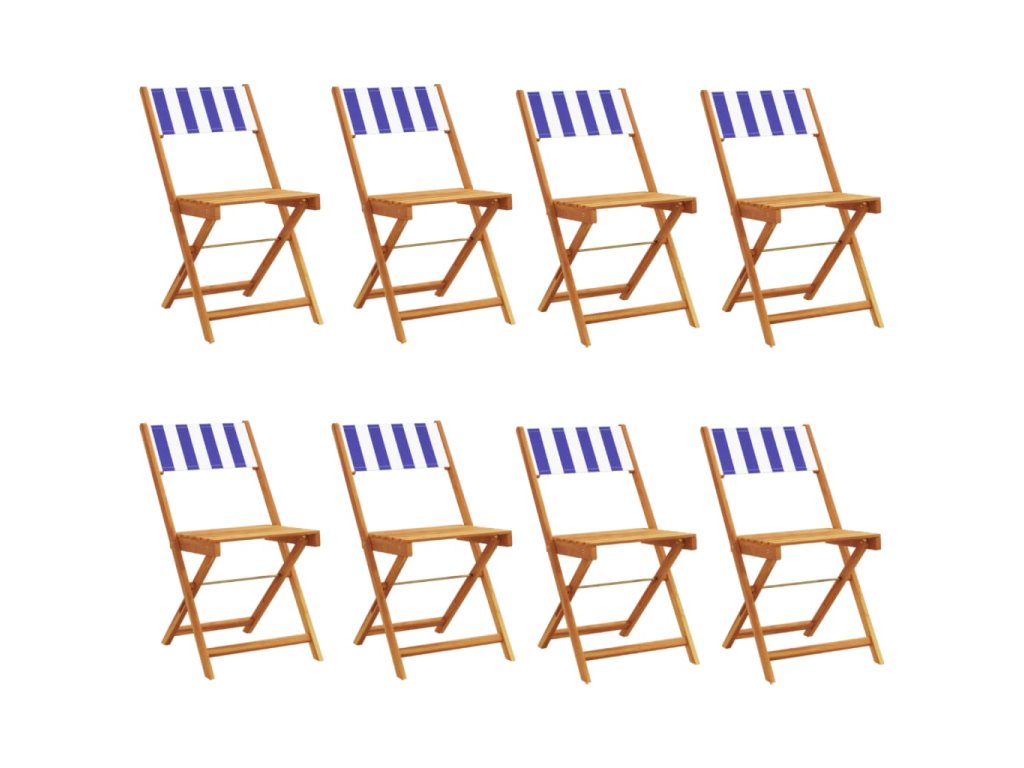 Multidom Skladacie záhr. stoličky 8ks modrá a biela látka+masívne drevo