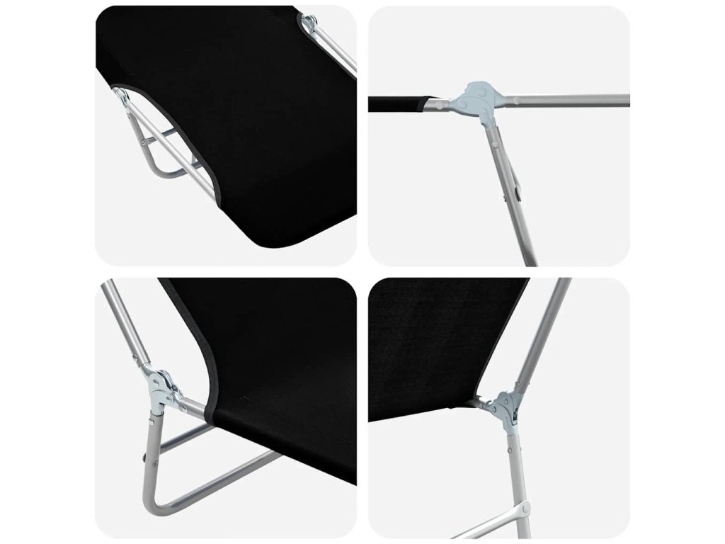 Multidom Skladacie záhradné ležadlá 2 ks, oceľ a látka, čierne