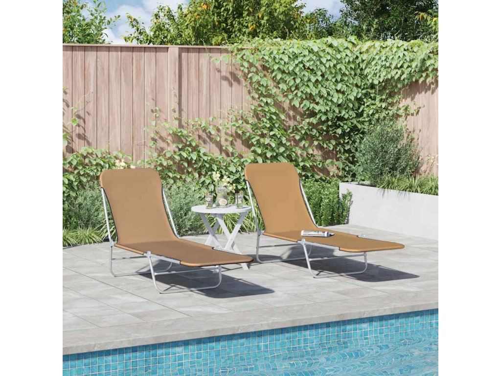 Multidom Skladacie záhradné ležadlá 2 ks, oceľ a látka, sivohnedé