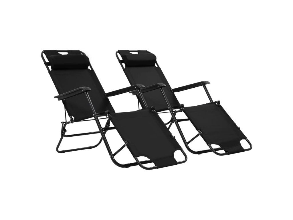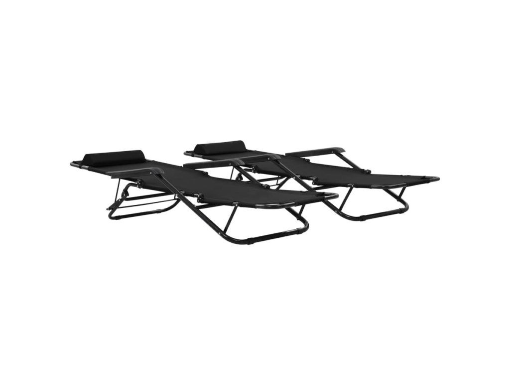 Multidom Skladacie záhradné ležadlá 2 ks, opierky na nohy, oceľ, čierne