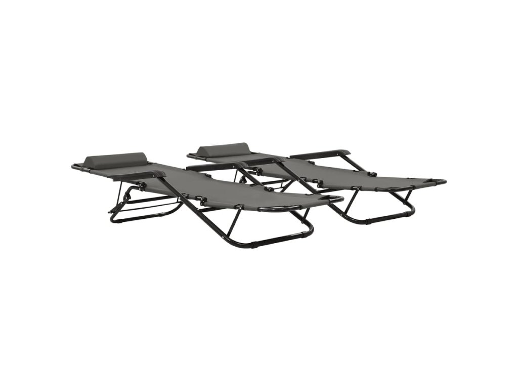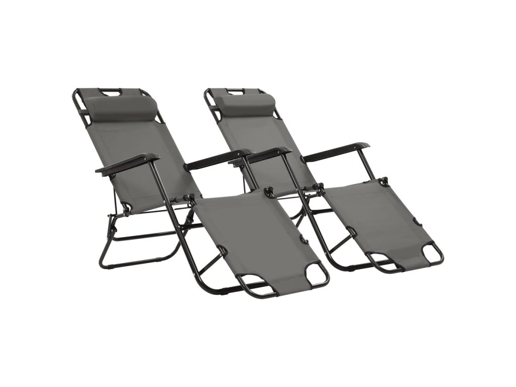 Multidom Skladacie záhradné ležadlá 2 ks, opierky na nohy, oceľ, sivé