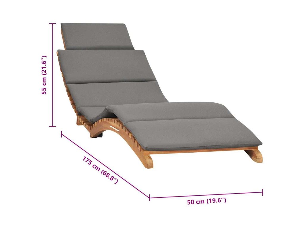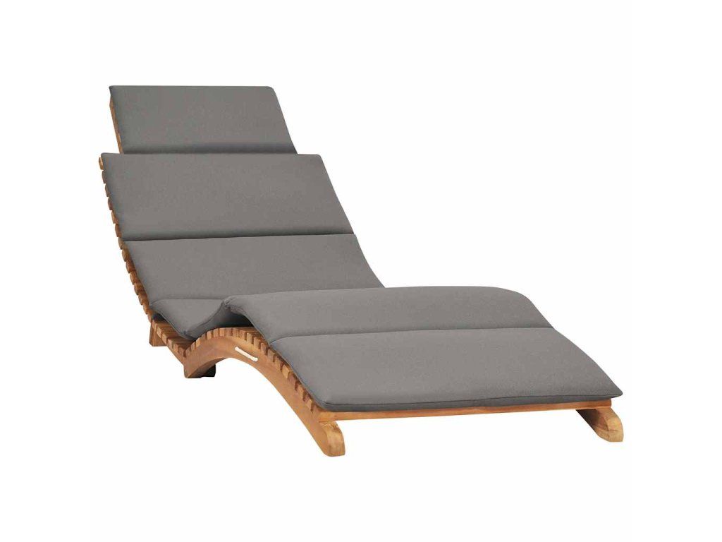 Multidom Skladacie záhradné ležadlo s vankúšom tmavosivé teakové drevo