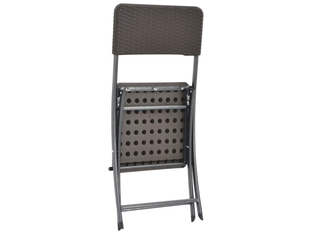 Sada stoličiek s robustným oceľovým rámom je veľmi trvácna a stabilná. Vďaka HDPE plastu, ktorý je odolný voči poveternostným vplyvom, sa stoličky ľahko čistia a sú vhodné do exteriéru. Sedadlo a operadlo s ratanovým vzhľadom dodávajú stoličkám štýlový nádych. Stoličky sú ľahké, takže ich môžete bez problémov premiestňovať. Dajú sa jednoducho poskladať, aby nezaberali veľa miesta, keď sa nepoužívajú. V balení sa nachádzajú 2 skladacie stoličky.