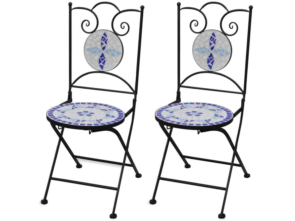 Multidom Skladacie záhradné stoličky 2 ks, keramika, modré a biele