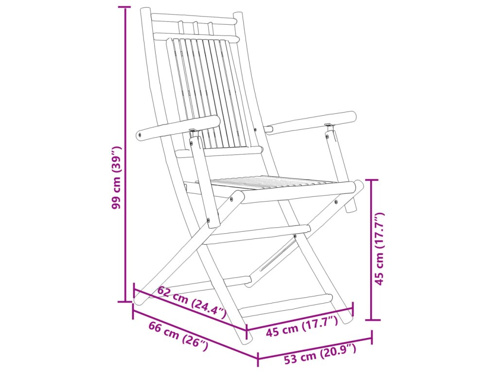 Tieto bambusové záhradné skladacie stoličky majú elegantný dizajn a budú skvelou voľbou na vonkajšie stolovanie v záhrade alebo na terase.