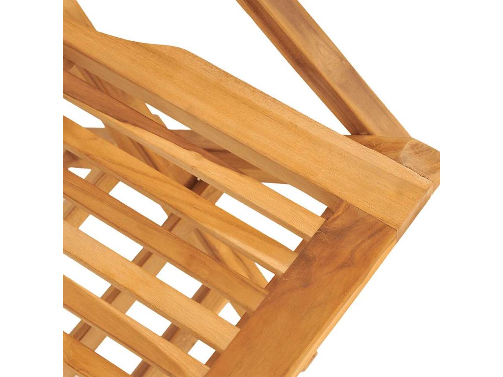 - Masívne tíkové drevo: Masívne tíkové drevo je krásny prírodný materiál. Bolo vyzreté, umelo vysušené a jemne obrúsené, čo mu dalo veľmi hladký vzhľad. Teakové drevo je známe svojou výnimočnou pevnosťou a odolnosťou voči poveternostným vplyvom.