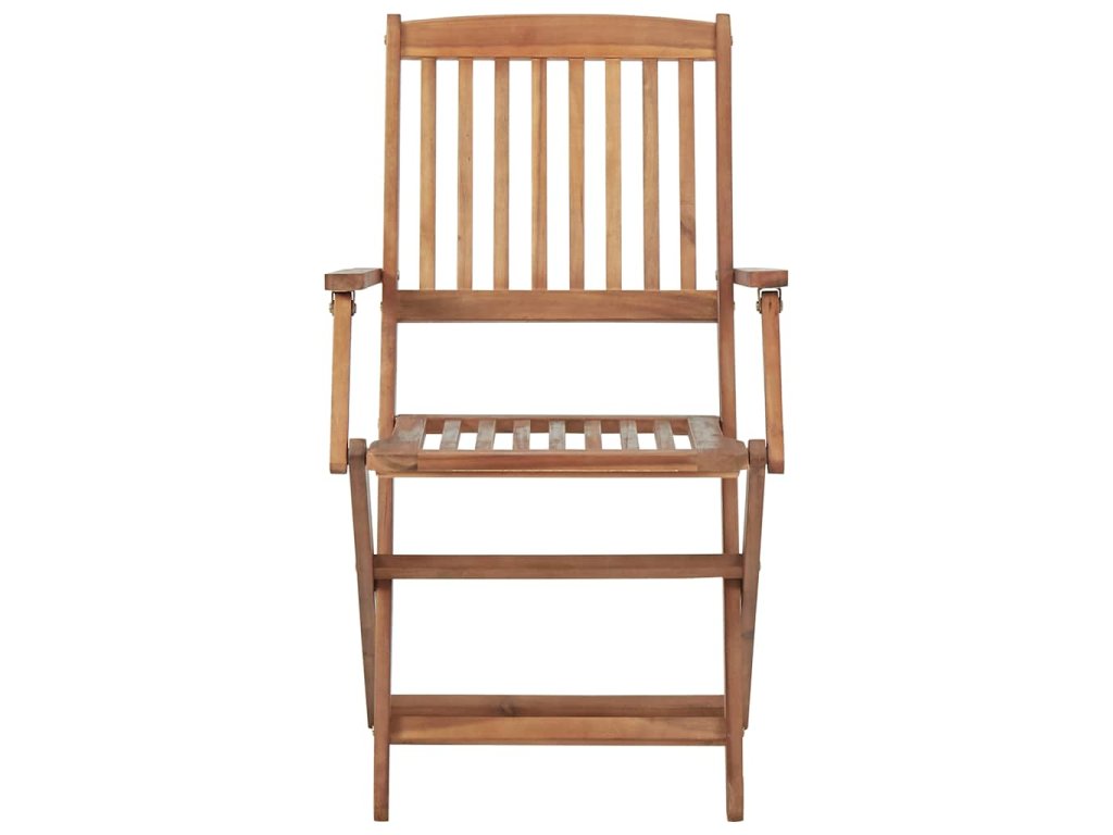 Tieto skladacie stoličky z masívneho akáciového dreva s podložkami poskytujú ideálne miesto na odpočinok a užívanie si slnečných lúčov na záhrade alebo terase.