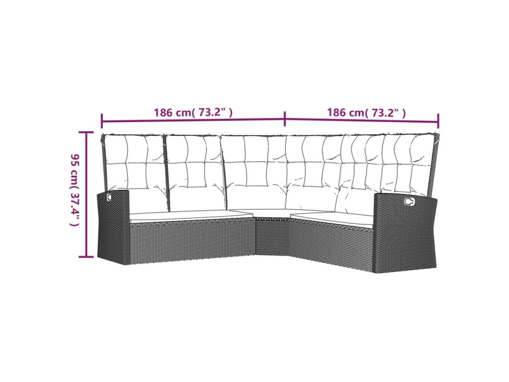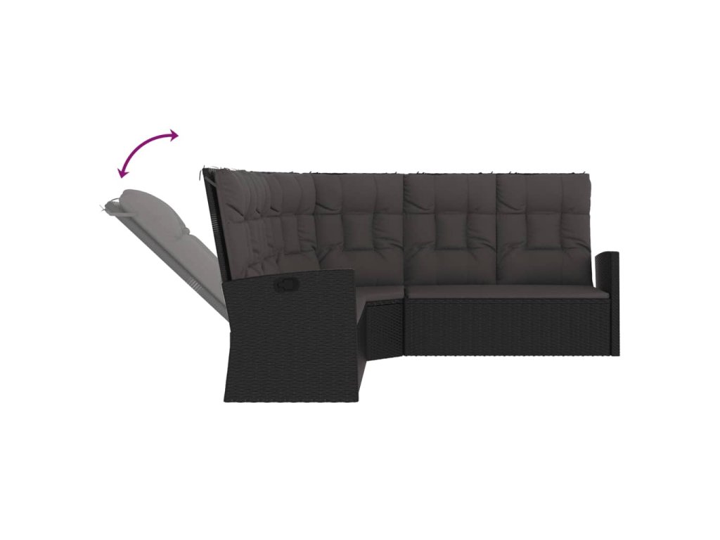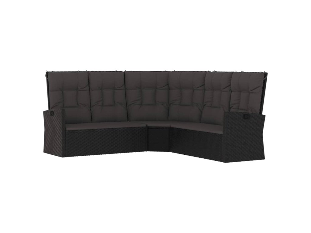 Multidom Sklápacia rohová pohovka s vankúšmi čierna polyratan
