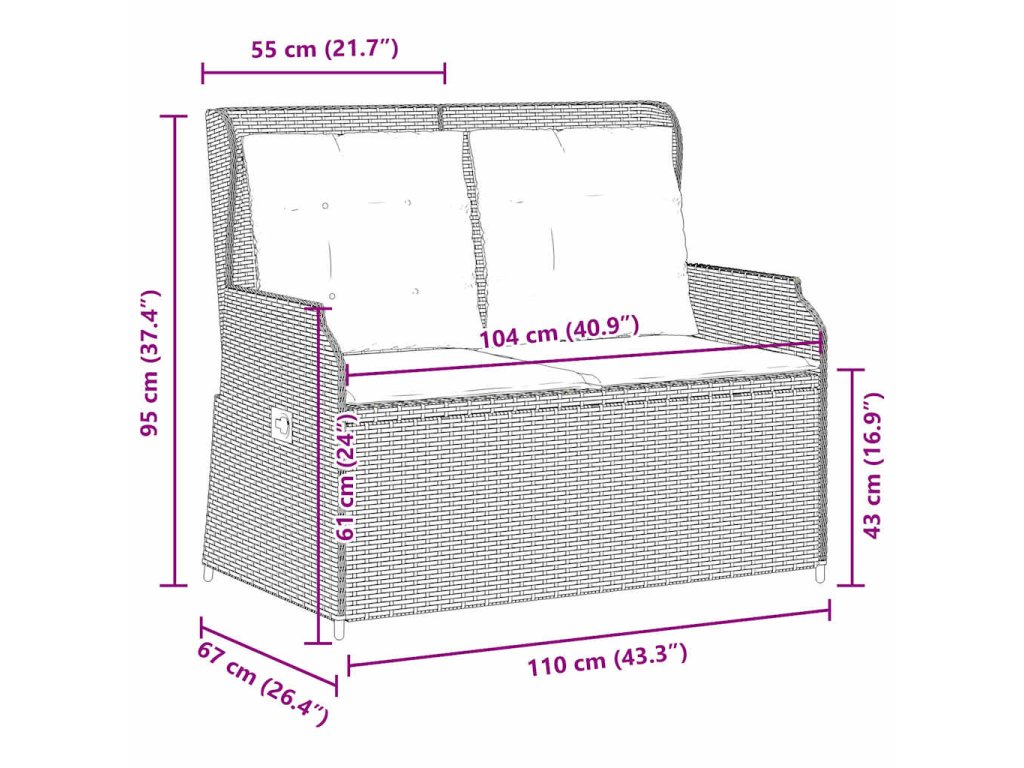- Rozmery v polohe na sedenie: 110 x 67 x 95 cm (Š x H x V)