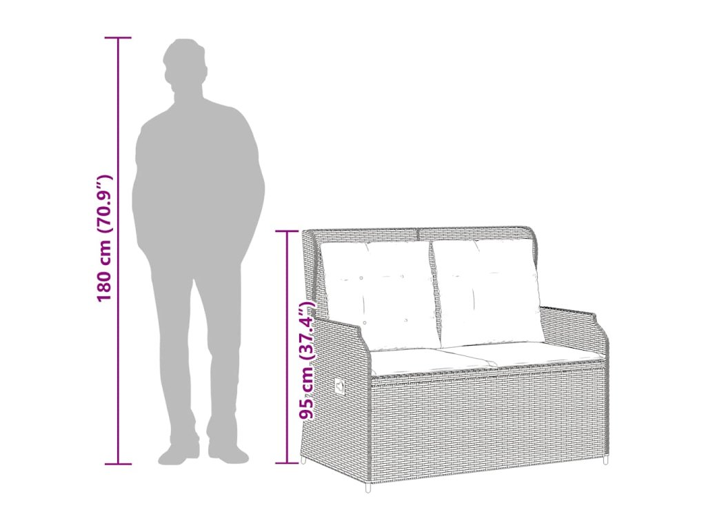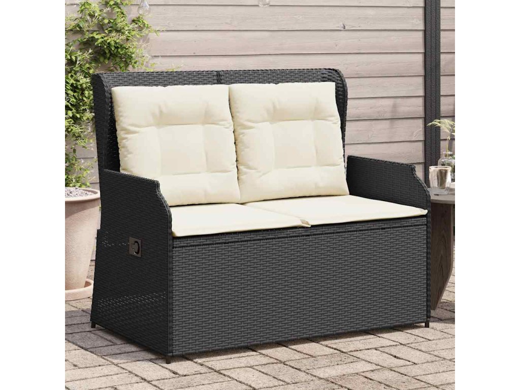 Multidom Sklápacia záhradná lavička s vankúšmi čierna polyratan