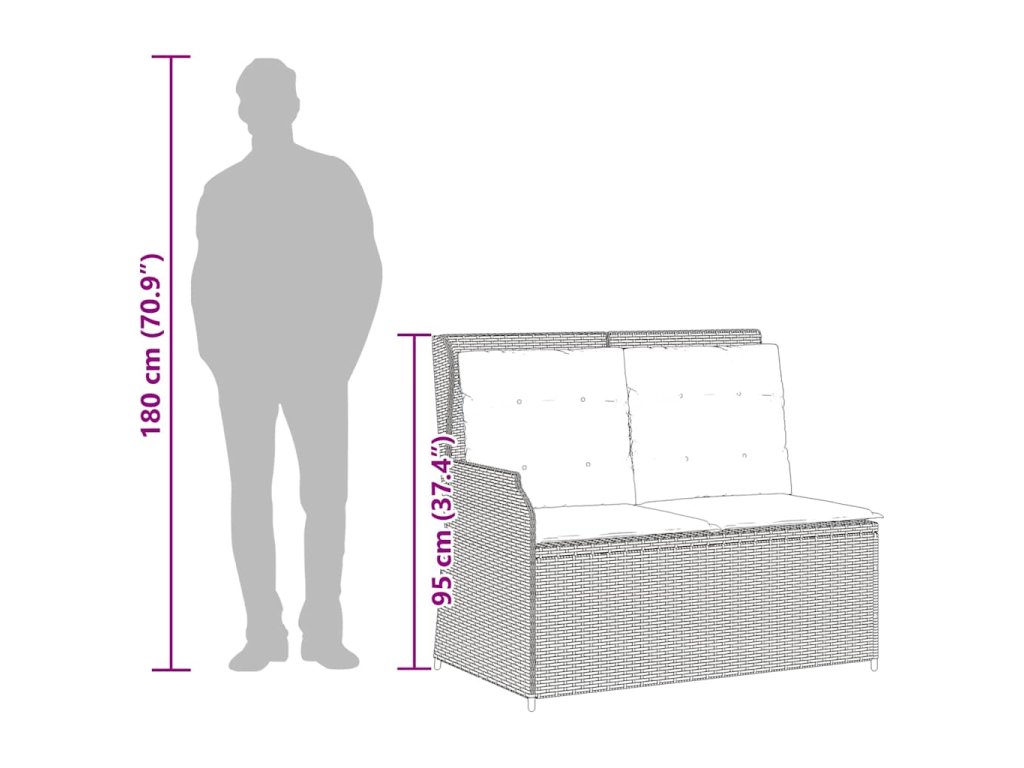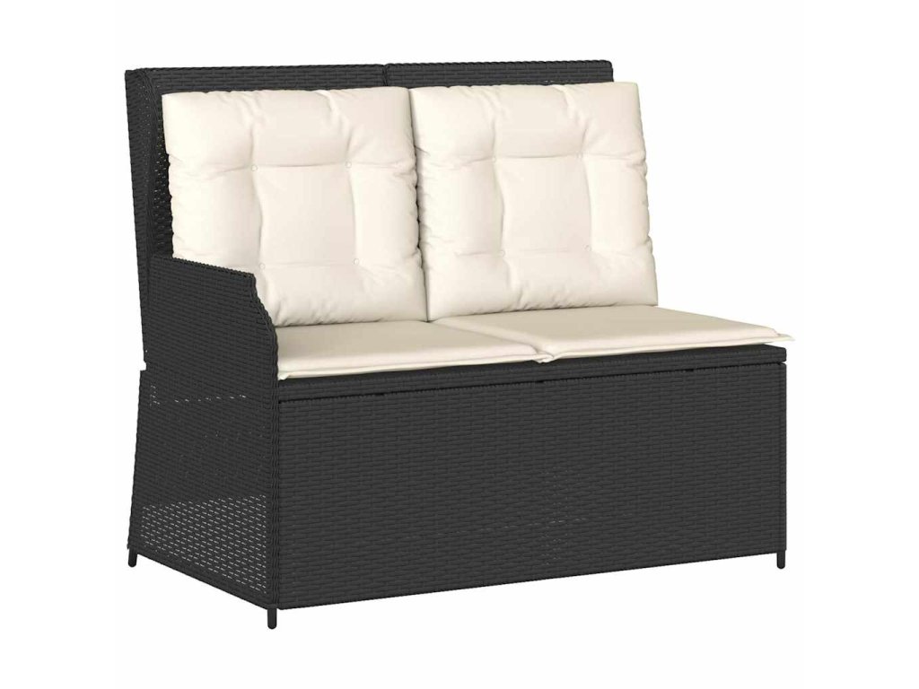 Multidom Sklápacia záhradná lavička s vankúšmi čierna polyratan
