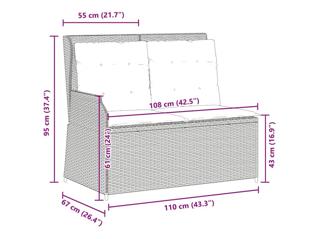 - Rozmery v polohe na sedenie: 110 x 67 x 95 cm (Š x H x V)