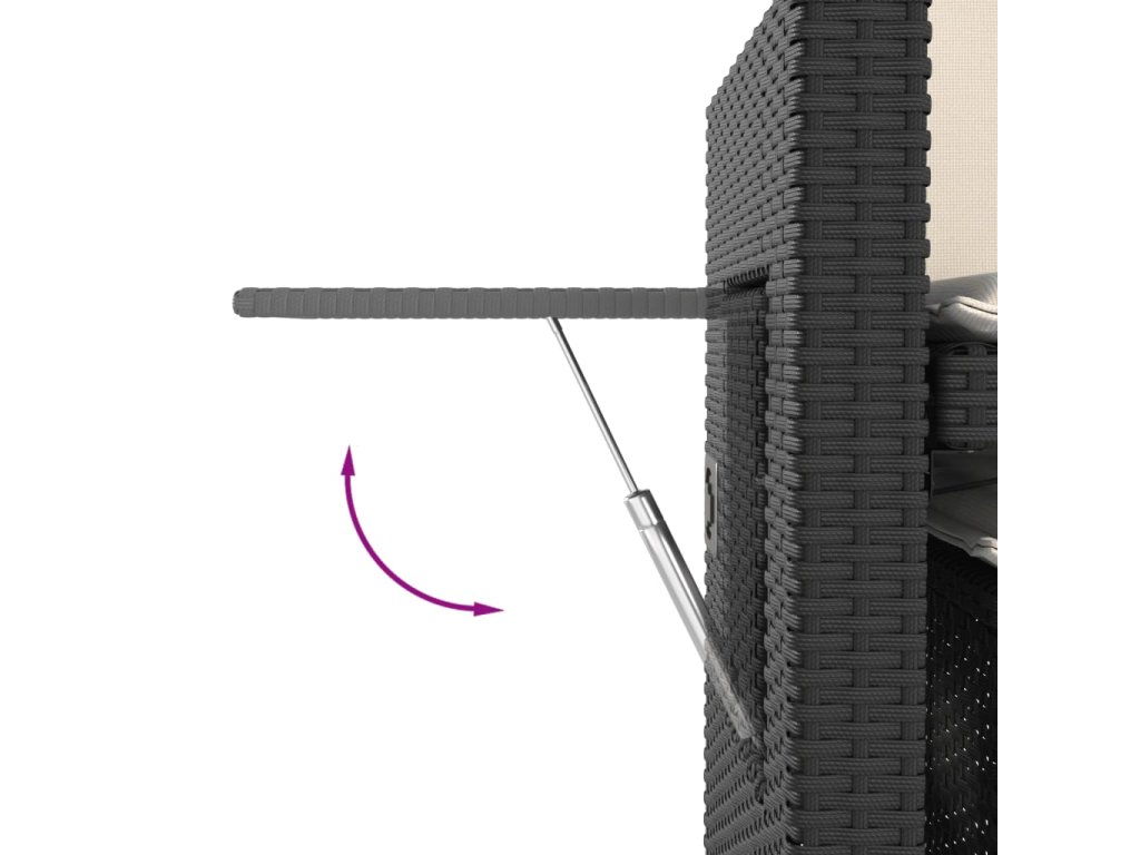 • Pohodlný bočný stolík: Tento vonkajší nábytok je vybavený sklápacími bočnými stolíkmi s plynovou pružinou na opierkach, ktorý poskytuje pohodlné miesto na odkladanie potrebných vecí na dosah.