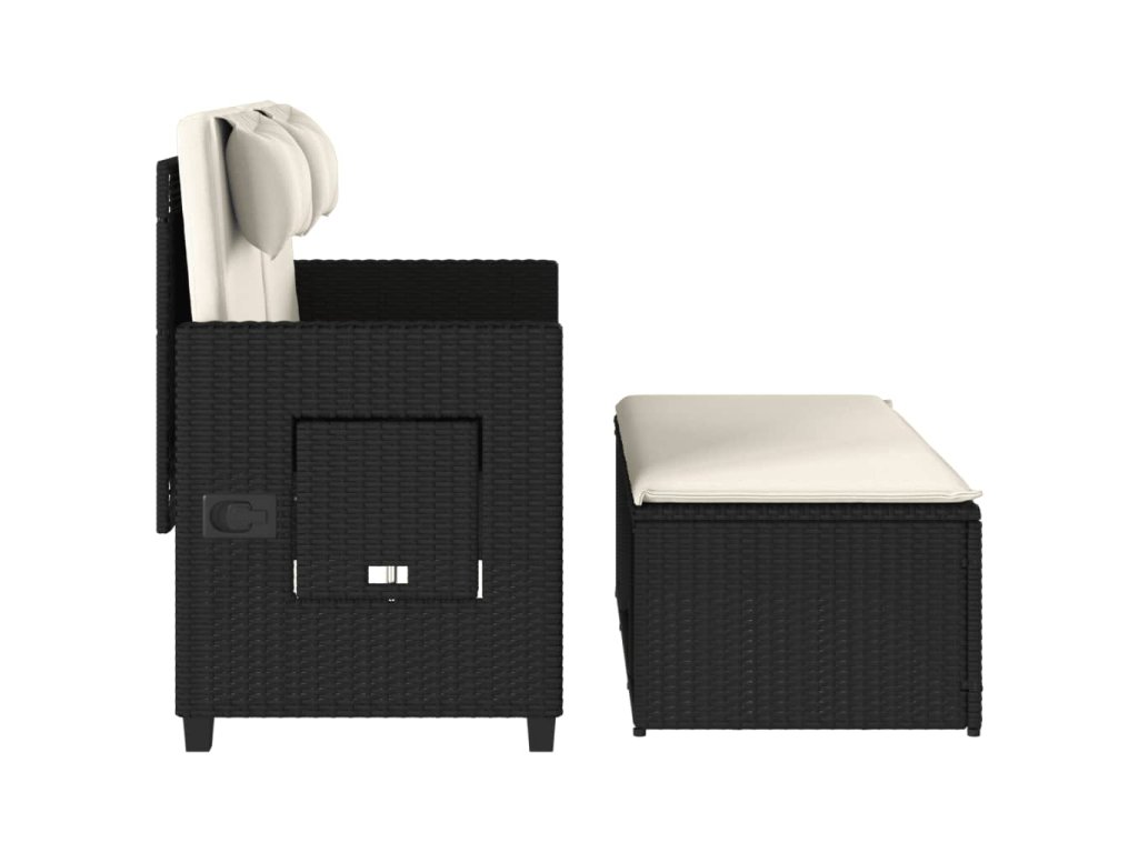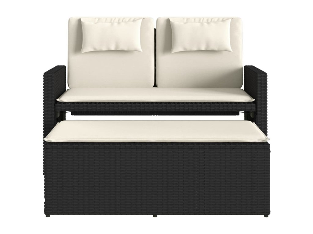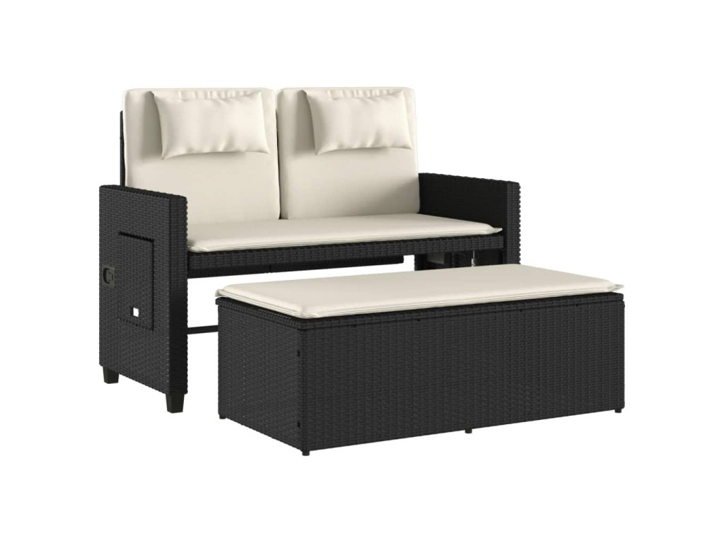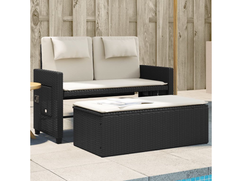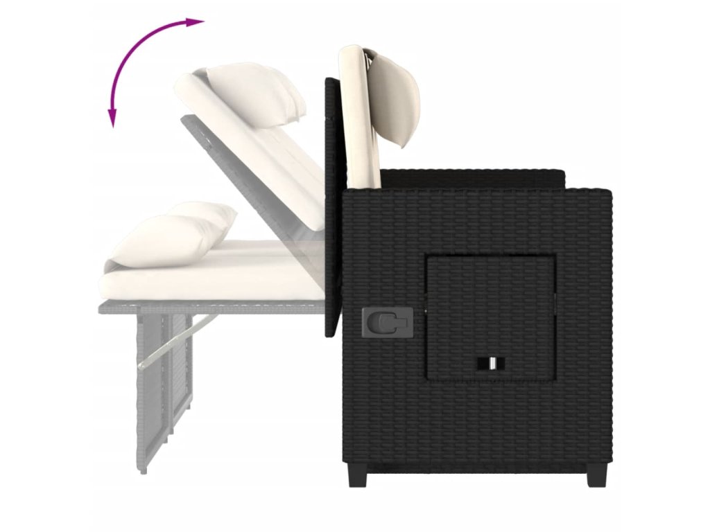 Multidom Sklápacia záhradná lavička s vankúšmi čierna polyratan