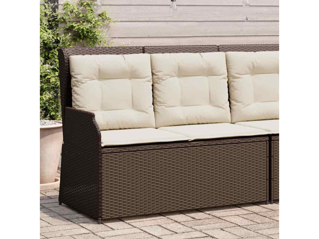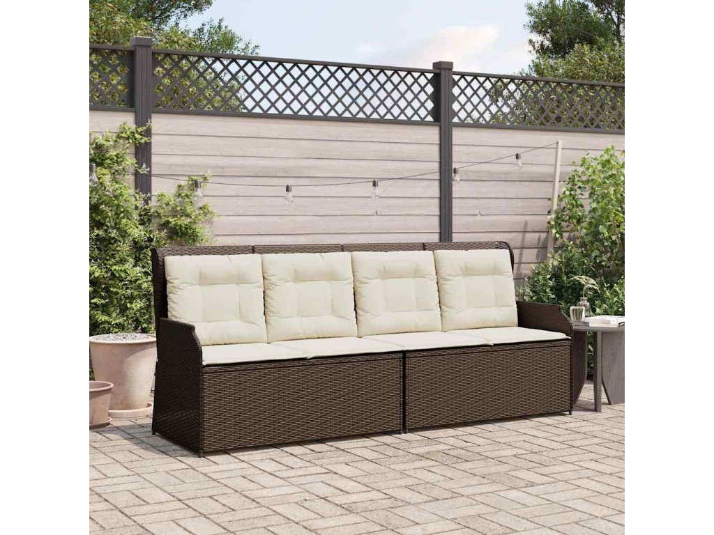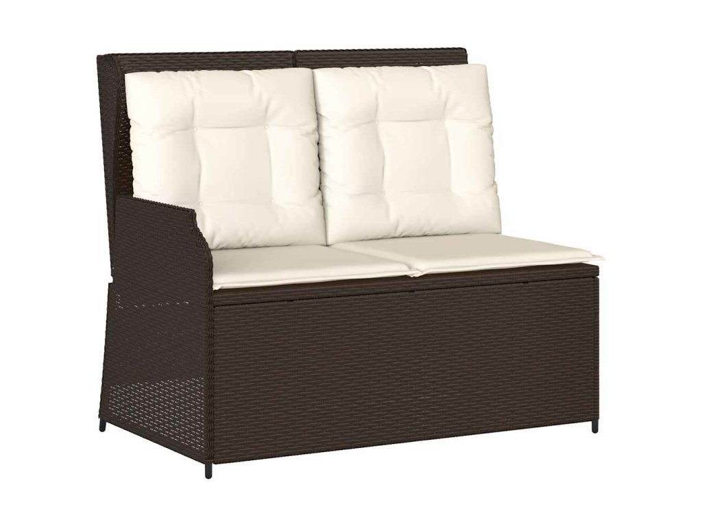 Multidom Sklápacia záhradná lavička s vankúšmi hnedá polyratan