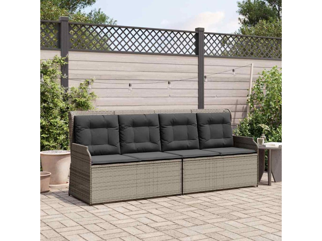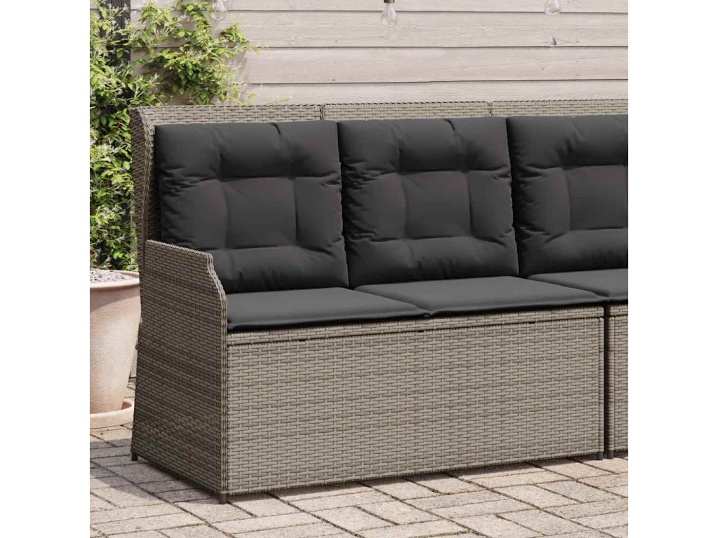 Multidom Sklápacia záhradná lavička s vankúšmi sivá polyratan