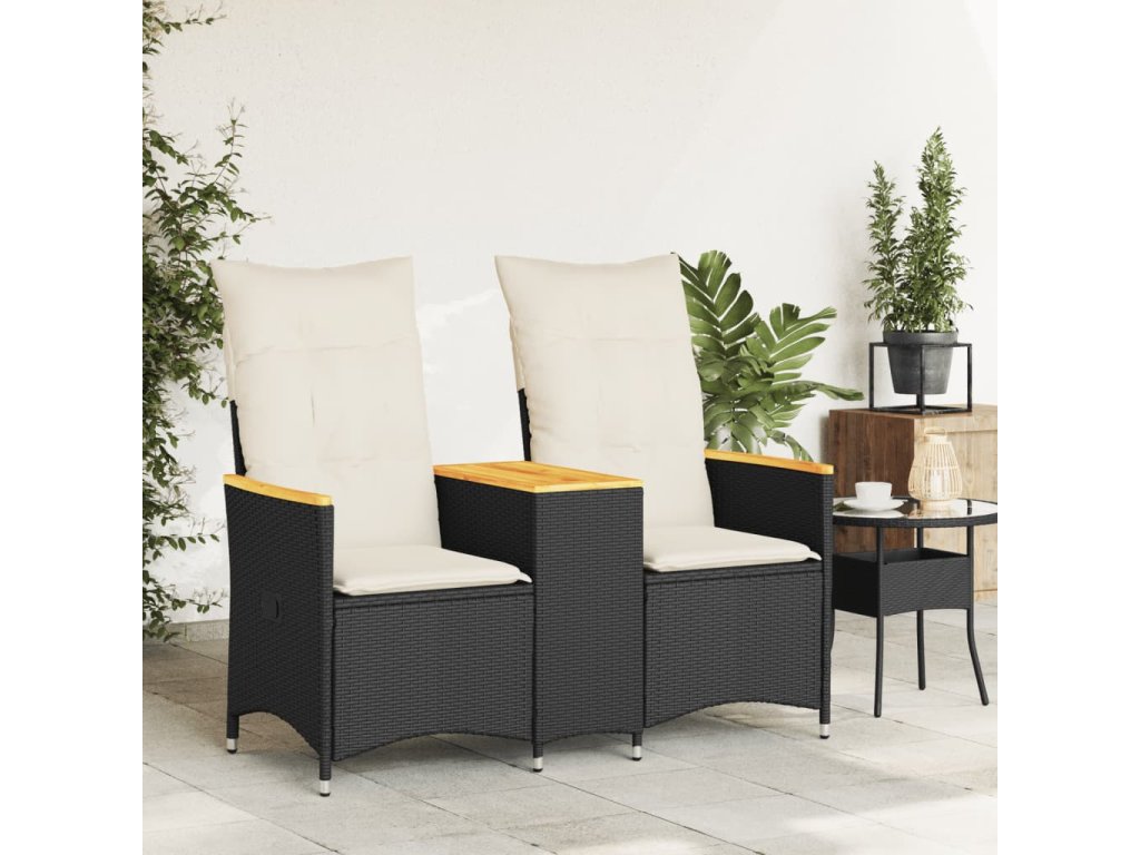 Multidom Sklápacia záhradná pohovka 2-miestna so stolom čierna polyratan