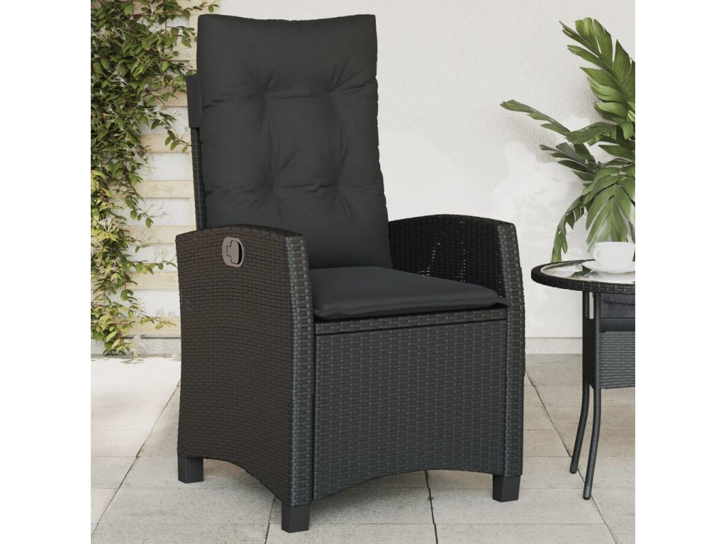Multidom Sklápacia záhradná stolička s vankúšmi čierna polyratan