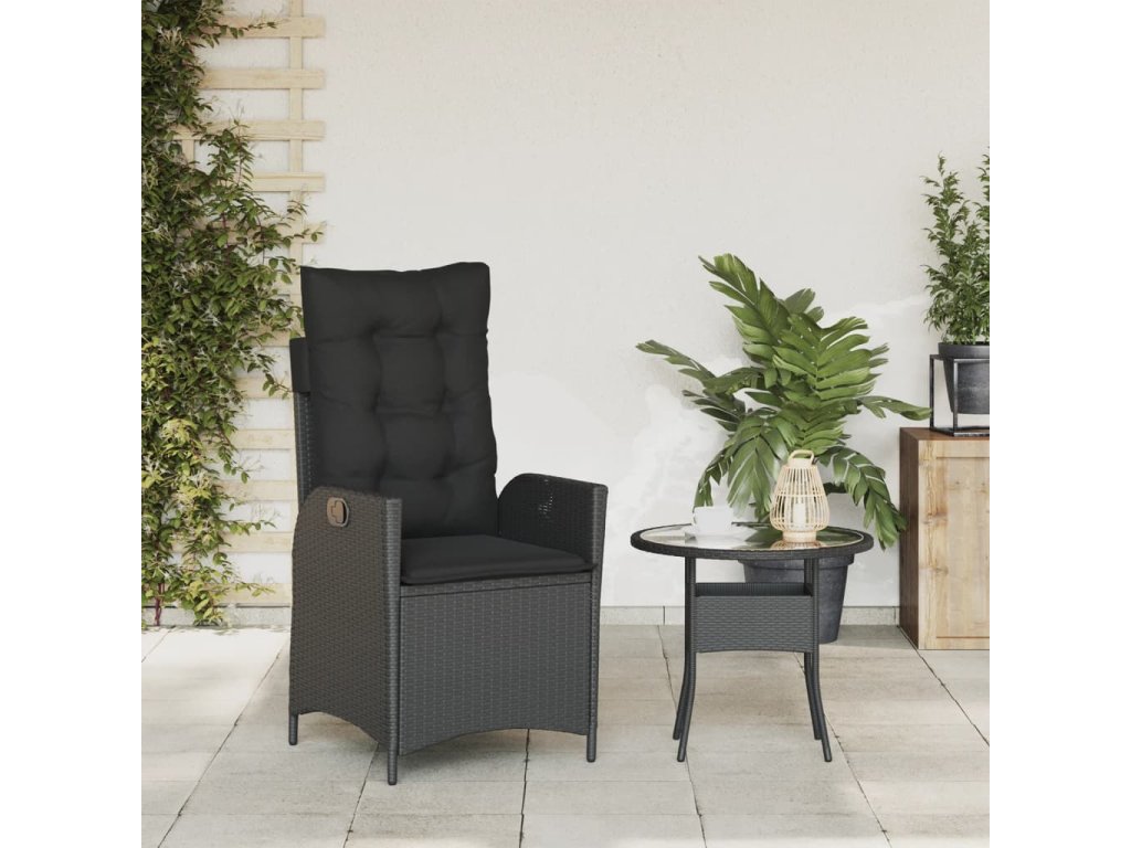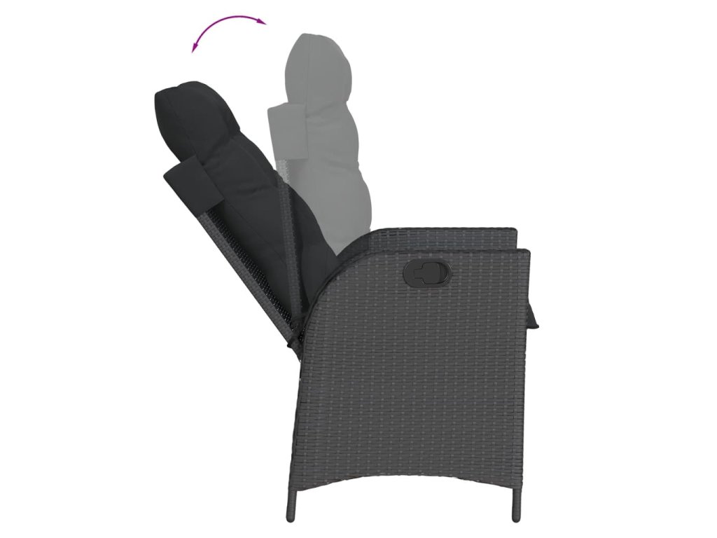 Multidom Sklápacia záhradná stolička s vankúšmi čierna polyratan