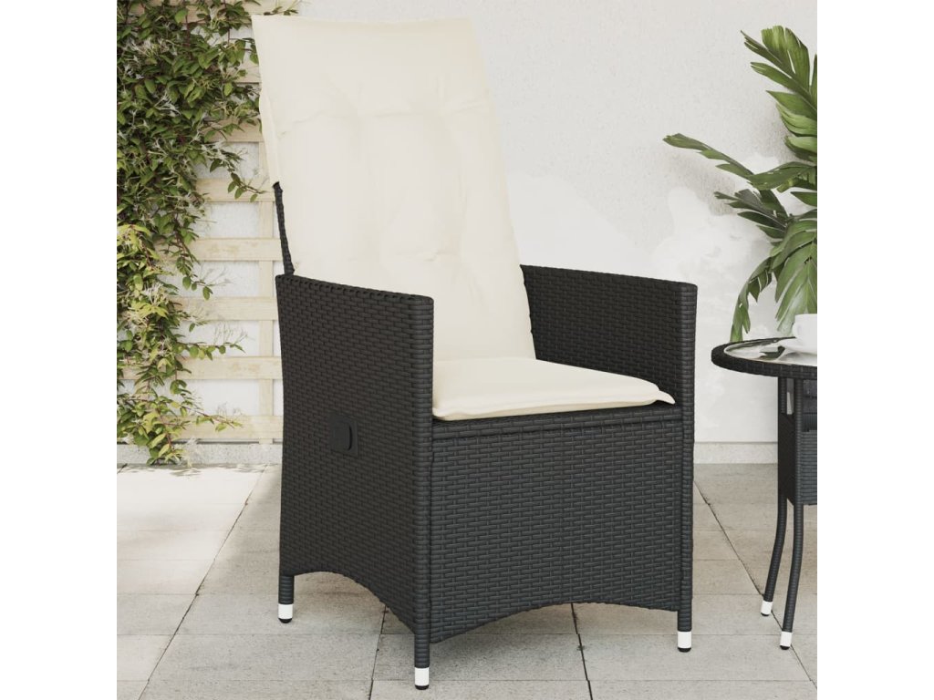Multidom Sklápacia záhradná stolička s vankúšmi čierna polyratan