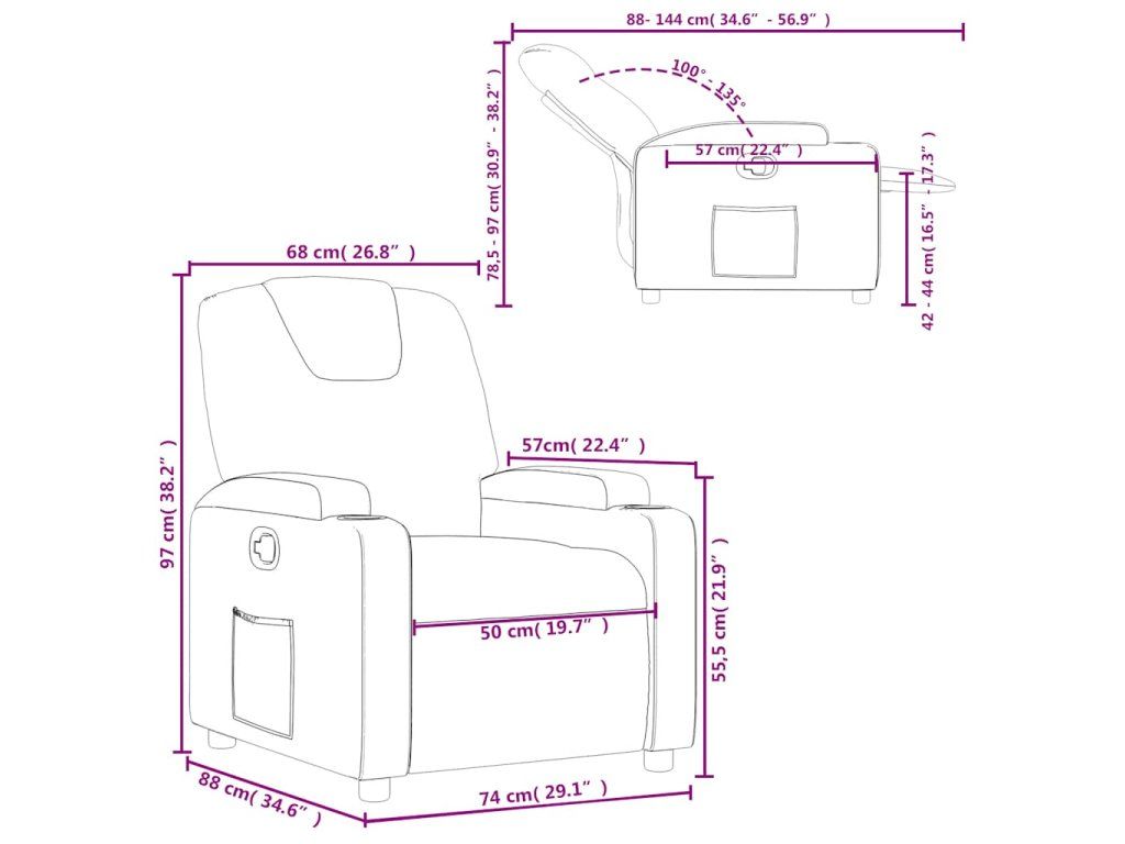 - Rozmery v polohe na sedenie: 74 x 88 x 97 cm (Š x H x V)