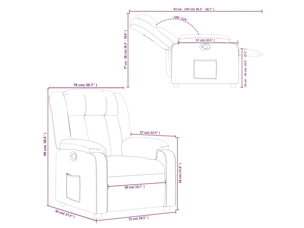 - Rozmery v polohe na ležanie: 78 x 149 x 77 cm (Š x H x V)