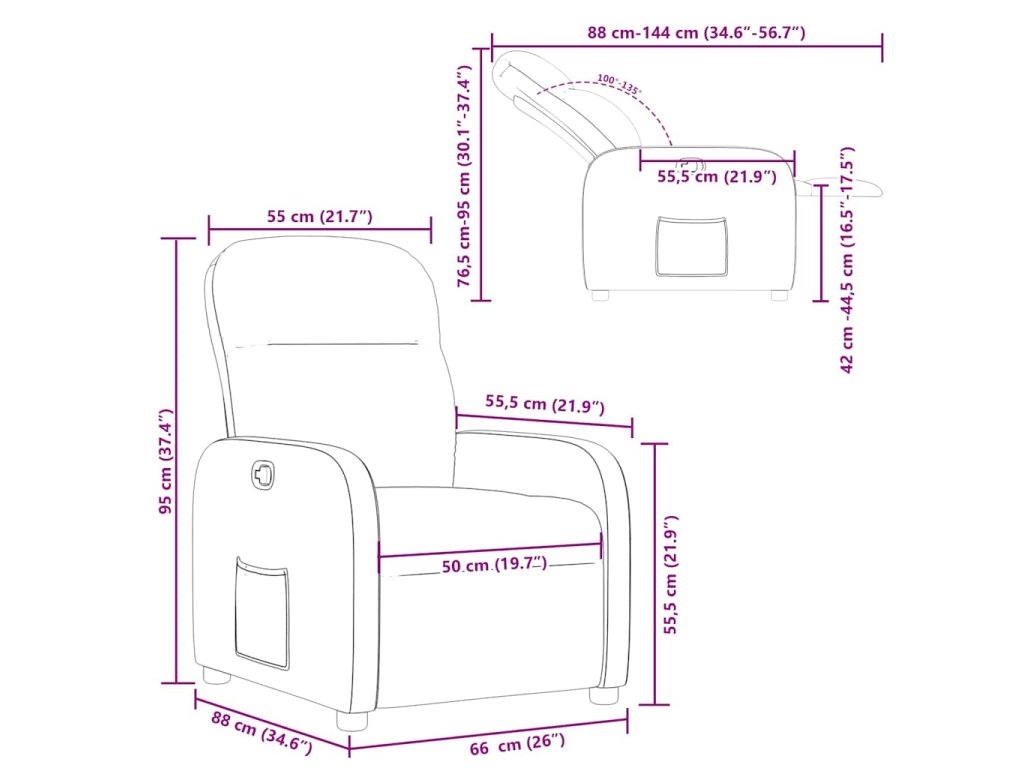- Rozmery v polohe na ležanie: 66 x 144 x 76,5 cm (Š x H x V)