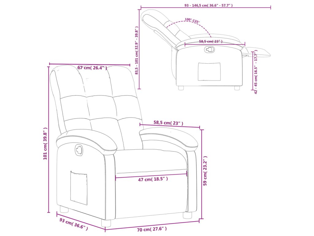 - Rozmery v polohe na ležanie: 70 x 146,5 x 83,5 cm (Š x H x V)
