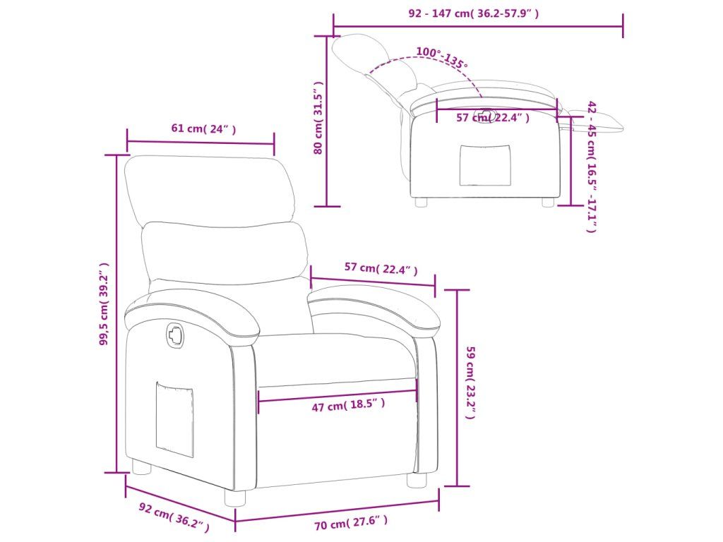 - Rozmery v polohe na ležanie: 70 x 147 x 80 cm (Š x H x V)