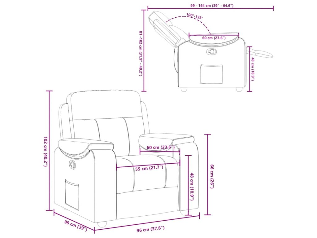 - Rozmery kresla v polohe na ležanie: 96 x 164 x 81 cm (Š x H x V)