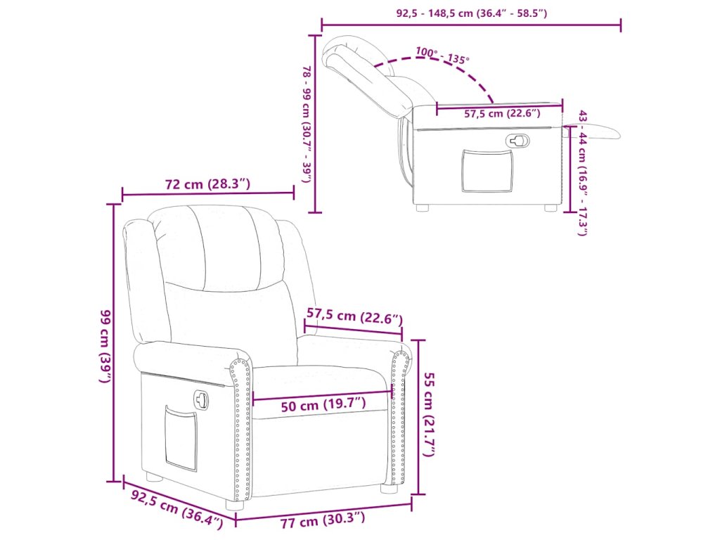 - Rozmery na ležanie: 77 x 148,5 x 78 cm (Š x H x V)
