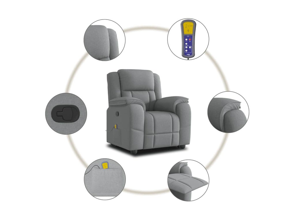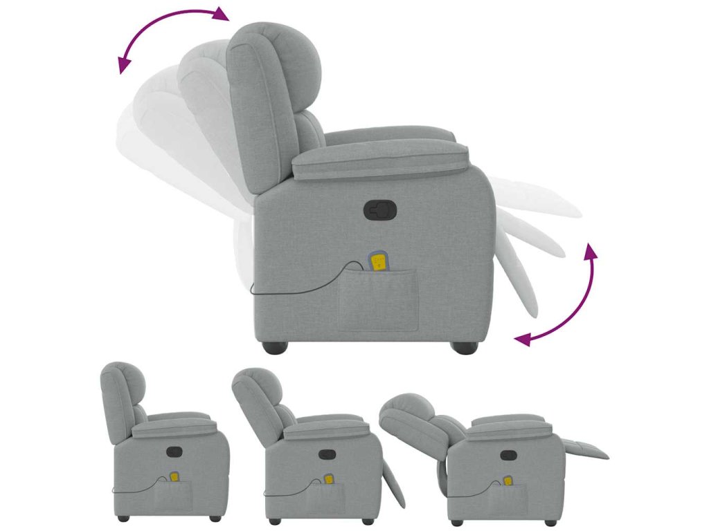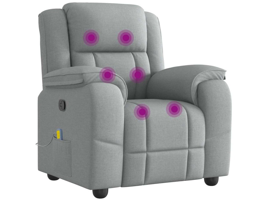 Multidom Sklápacie masážne kreslo bledosivé látka