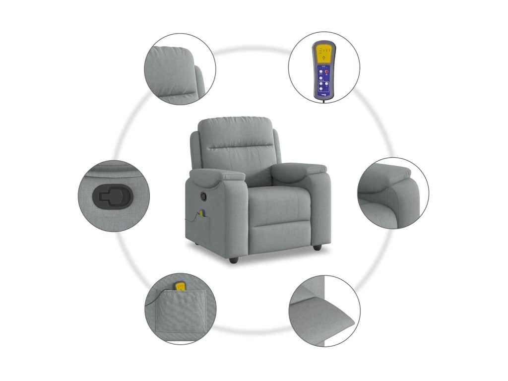 Multidom Sklápacie masážne kreslo bledosivé látka