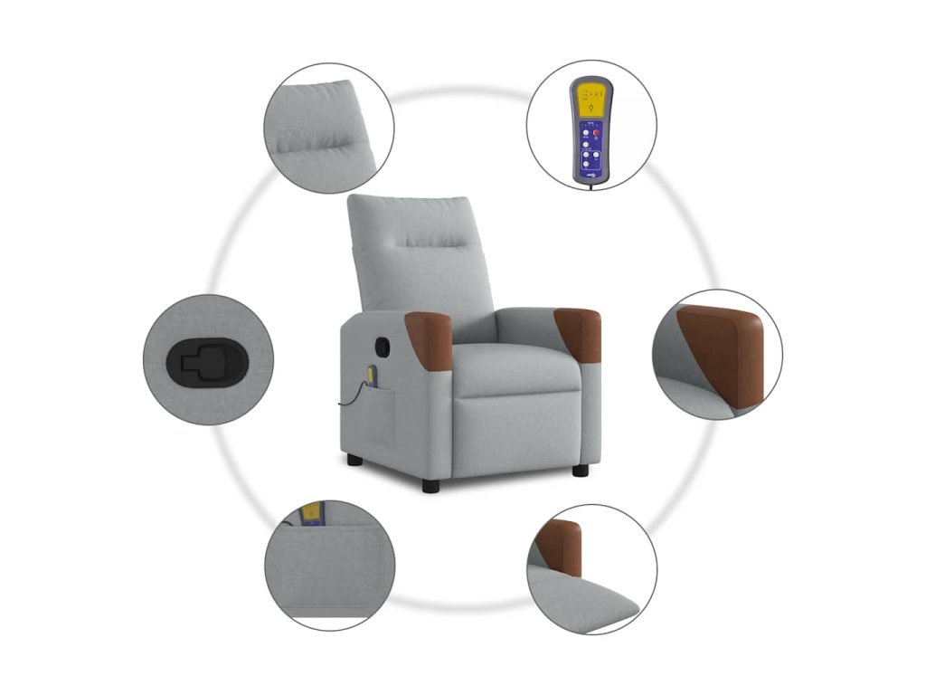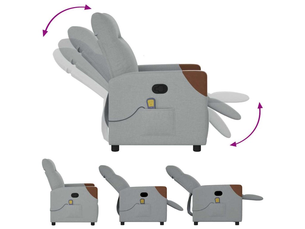 Multidom Sklápacie masážne kreslo bledosivé látka