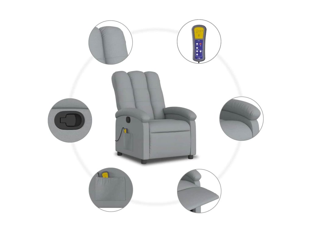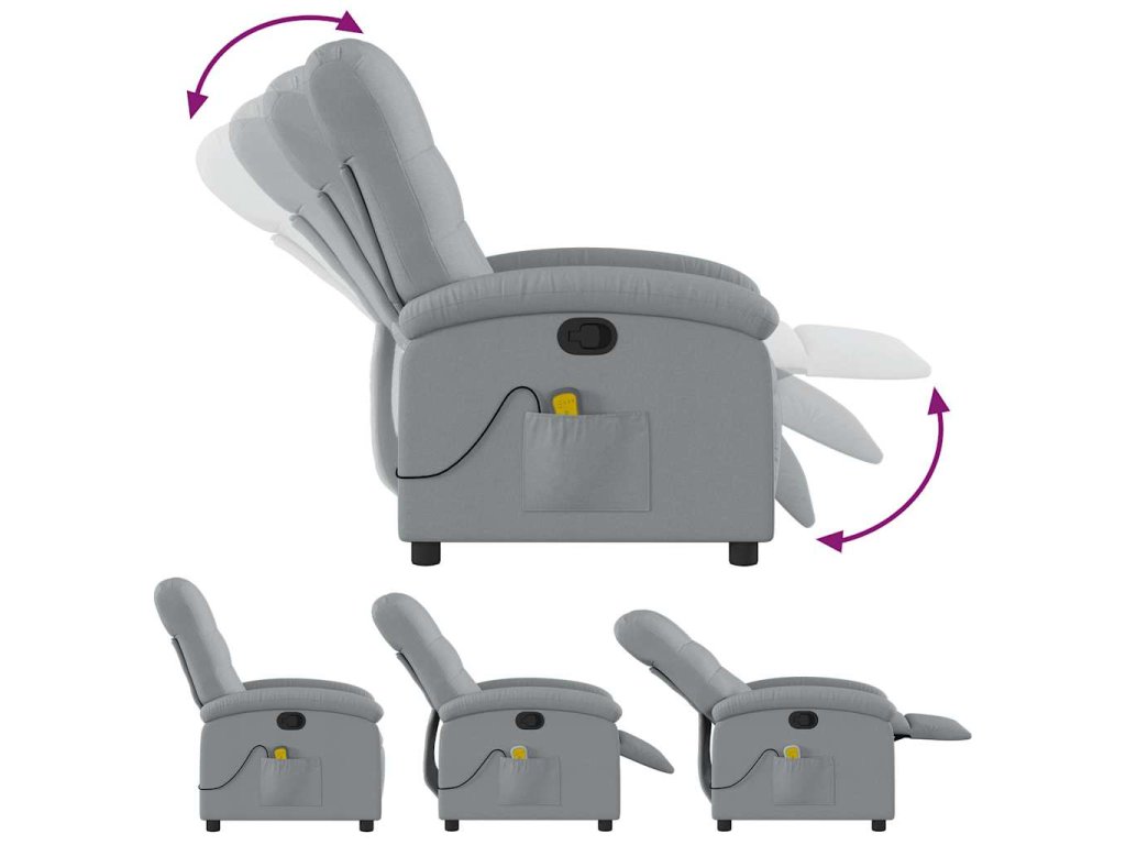 Multidom Sklápacie masážne kreslo bledosivé látka