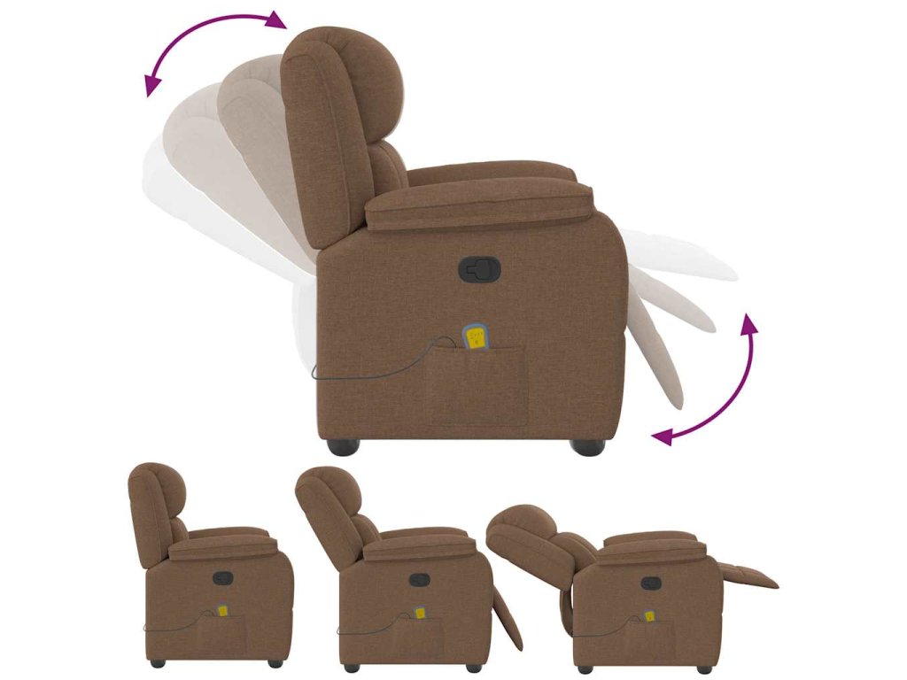 Multidom Sklápacie masážne kreslo hnedé látka