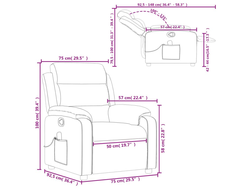 - Rozmery v polohe na ležanie: 75 x 148 x 79,5 cm (Š x H x V)