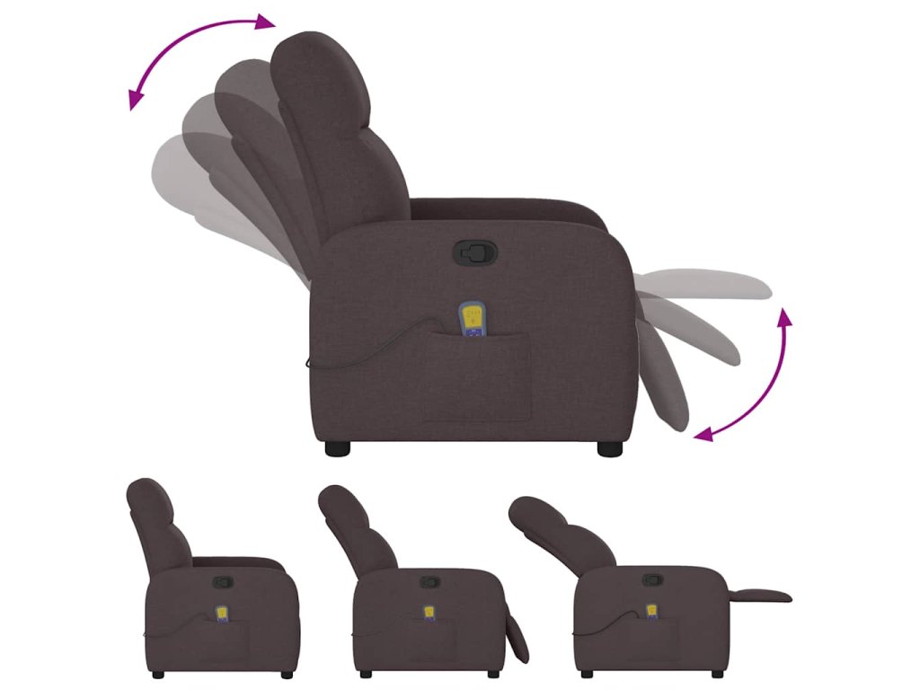 Multidom Sklápacie masážne kreslo tmavohnedé látka