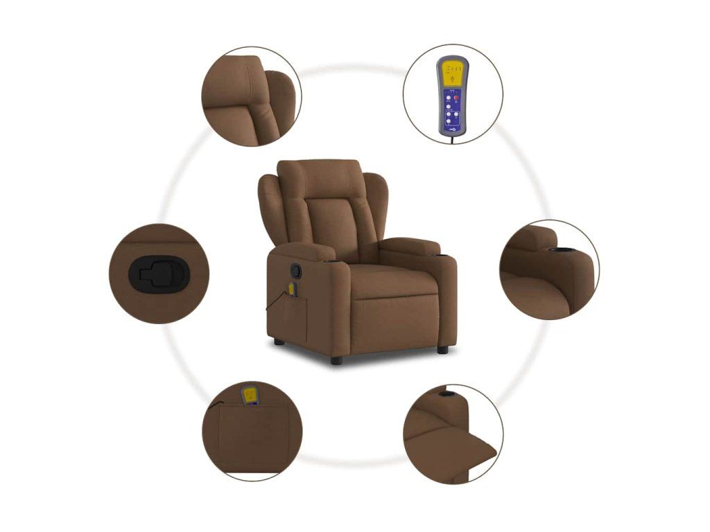 Multidom Sklápacie masážne kreslo tmavohnedé látka