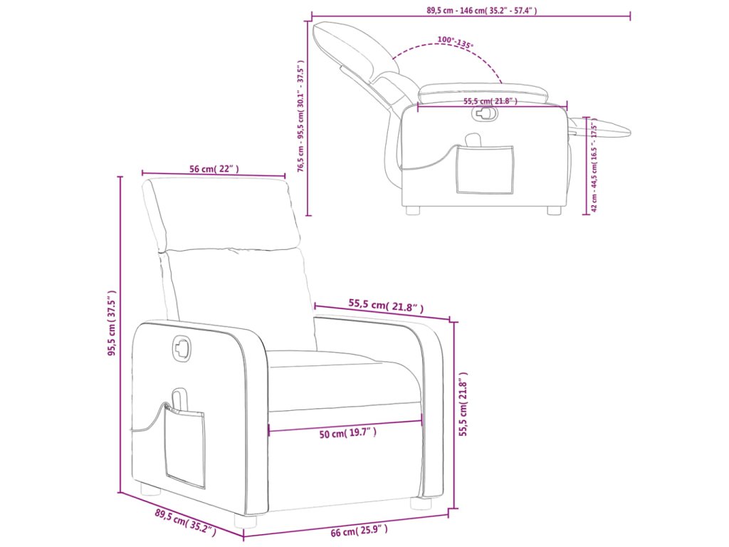 - Rozmery v polohe na sedenie: 66 x 89,5 x 95,5 cm (Š x H x V)